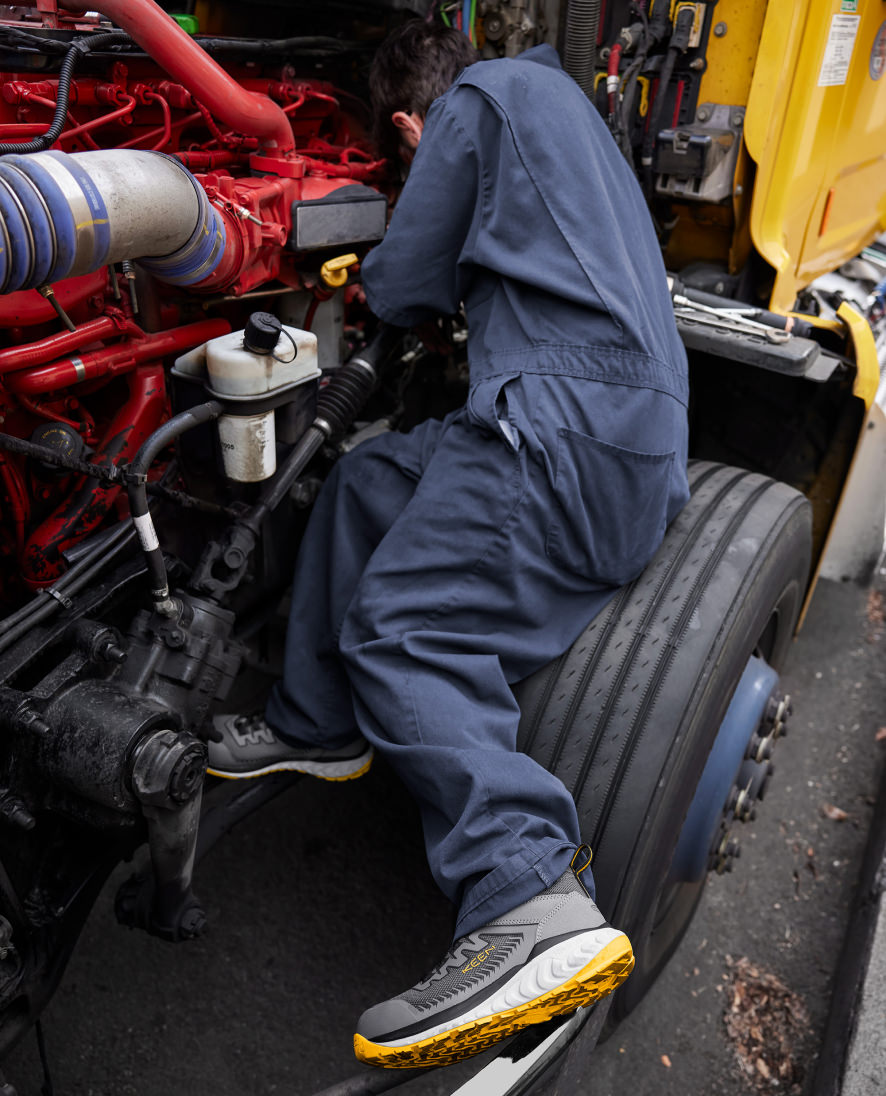 Made for constant movement and long hours on your feet, this mid-height safety-toe work sneaker provides athletic performance and energy-returning comfort.
