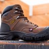 Tackle tougher tasks with this all-leather steel toe work boot, featuring waterproof protection, durable construction, and a shock-absorbing midsole for comfort that doesn’t quit.