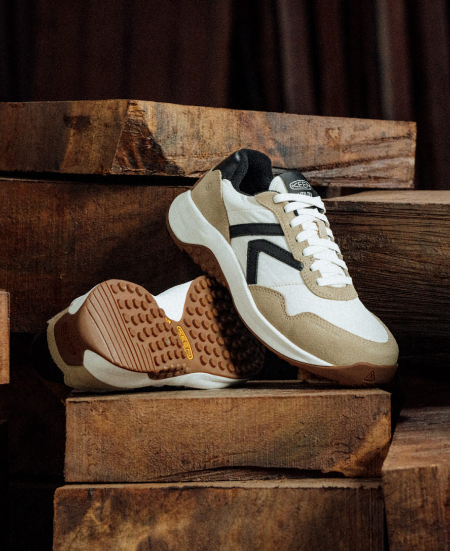 Throwback trail runner design made workday-ready. This ultra-light, carbon-toe work sneaker features a women’s-specific fit, energy-returning KEEN.ReGEN cushioning and a slip-resistant outsole.
